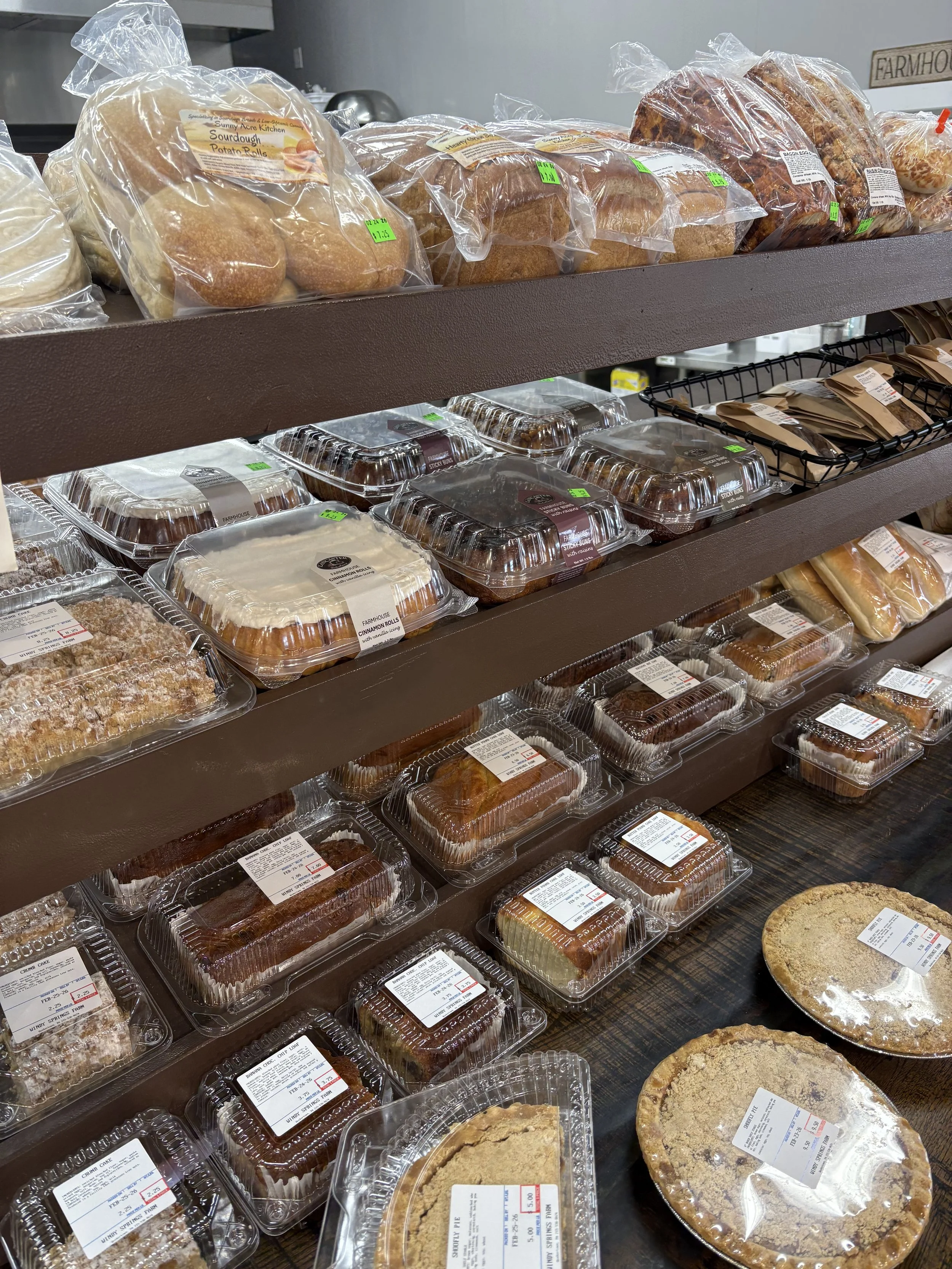 Fruit Pies, Cinnamon Rolls, Sticky Buns, Shoo Fly Pie, Cookies, Loaves, Crumb Cake